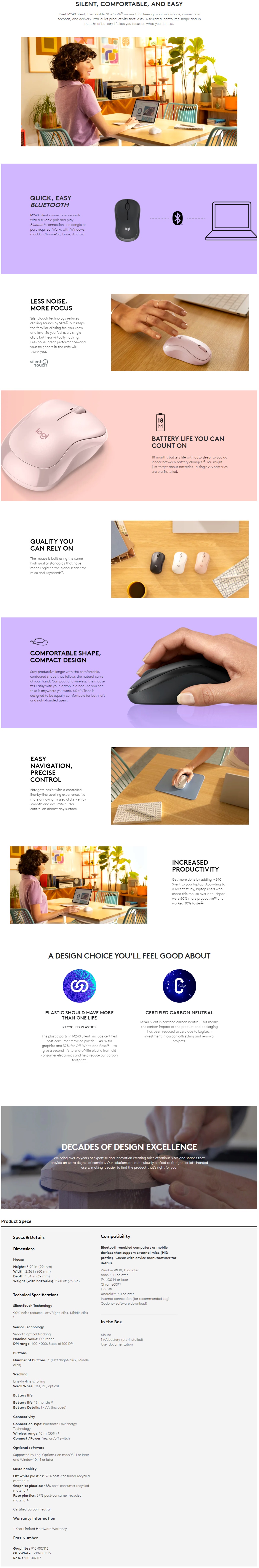 Experience effortless wireless control with the Logitech M240 Silent Bluetooth Mouse. This compact, lightweight mouse delivers precise optical tracking, smooth scrolling, and whisper‑quiet clicks for distraction‑free work. Connect via Bluetooth from up to 10 m away and enjoy up to 12 months of battery life from a single AA battery. With adjustable DPI from 400 to 4000, you can tailor sensitivity to your workflow. It is comfortable for all‑day use and easy to take anywhere.