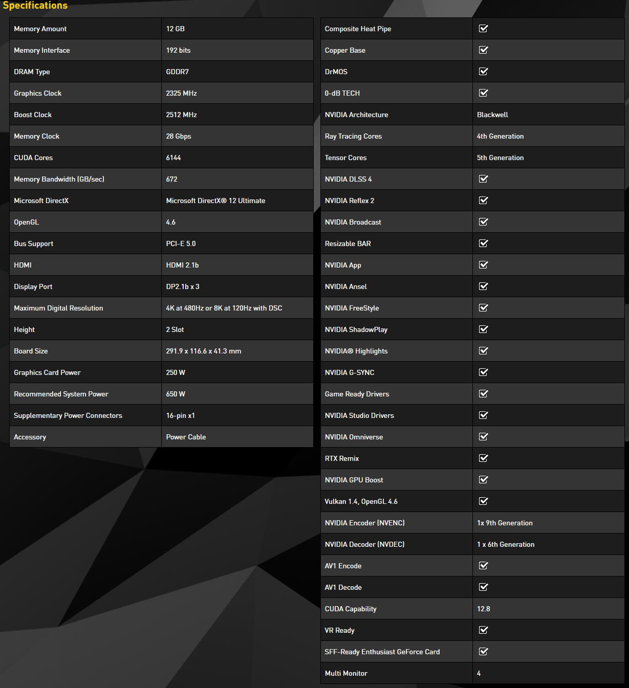 The Palit Infinity 3 GeForce RTX 5070 12GB GDDR7 Graphics Card uses Palit’s compact Infinity 3 triple‑fan cooler, designed for strong airflow in small‑form‑factor cases. It features a Composite Heat Pipe system combining grooved and sintered powder structures to improve thermal transfer efficiency, paired with a 0‑dB semi‑passive mode that keeps the fans off during low‑load operation. The shroud uses a clean, minimalist black design with subtle RGB accents via ARGB lighting, controllable through Palit’s ThunderMaster software. The card supports DLSS 4, Ray Reconstruction, Multi‑Frame Generation, and the full suite of Blackwell‑era RT and Tensor core enhancements. Display output includes 3× DisplayPort 2.1 and 1× HDMI 2.1, with support for 8K HDR and high‑refresh‑rate 4K gaming. It uses a 16‑pin 12V‑2×6 power connector