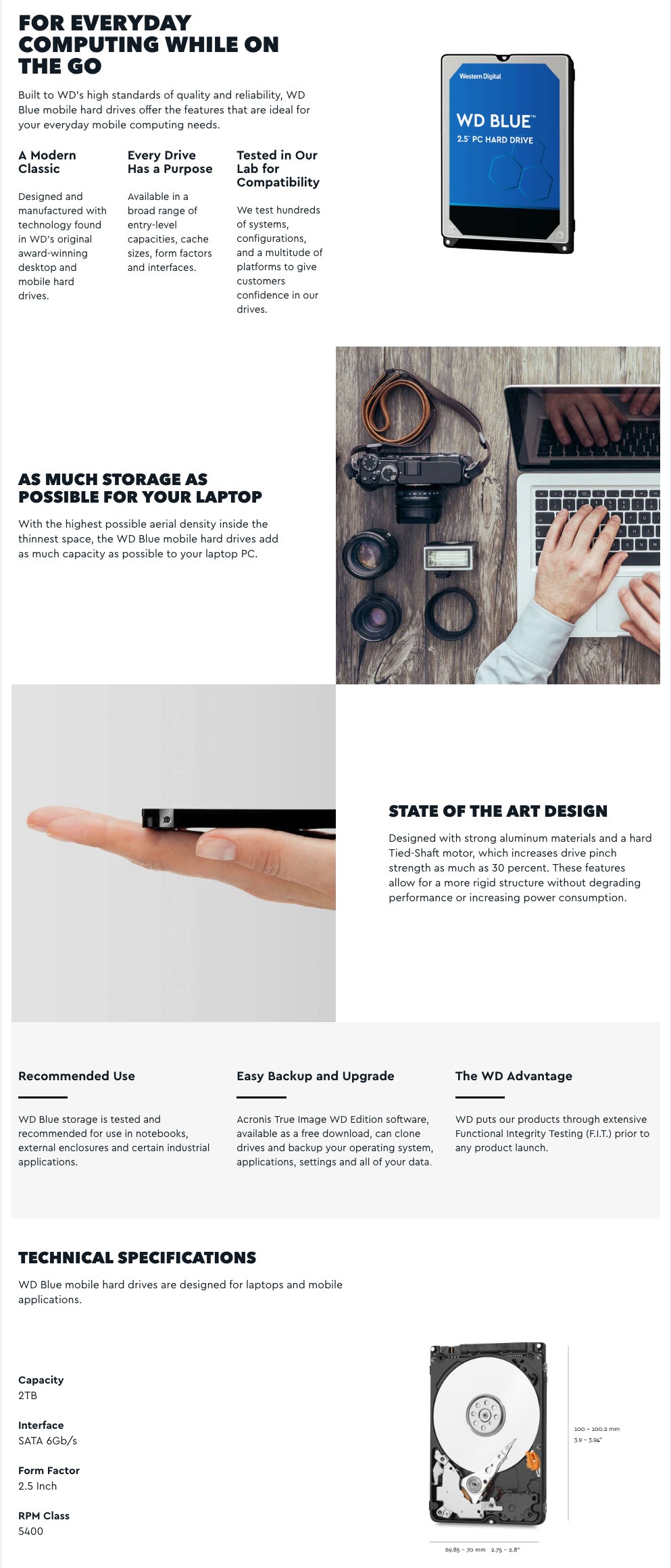 Sold Out - Check back or email us for updatesThe Western Digital 2TB Blue Hard Drive, SATA III 6.0Gb/s, 2.5in 64MB Cache, 5400RPM. These drives feature inspiring performance and capacity using high-end components which allows the disks inside the drive to adapt to any mounting problems or vibration conditions with a 2 year WD warranty.