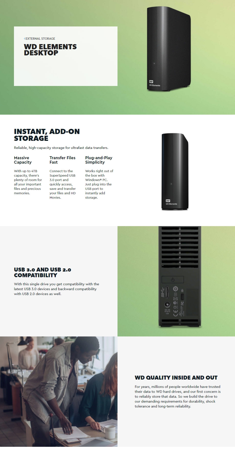 The Western Digital WD Elements allows you to connect to the SuperSpeed USB 3.0 port and quickly access, save and transfer your files and HD Movies. It features a 6TB capacity and works right out of the box with Windows PC. Just plug into the USB port to instantly add storage. Formatted NTFS for Windows 10, Windows 8, Windows 7. Requires reformatting for Mac OS X.