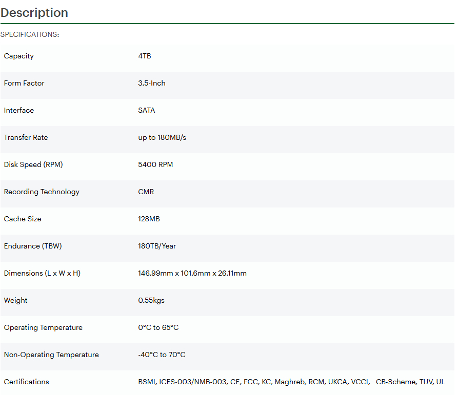 The WD WD40EFZZ 4TB Red Plus 3.5" 5400RPM SATA NAS Hard Drive features RPM Class: 5400 RPM, Cache: 128MB, Interface Transfer Rate: 180 MB/s, NASware 3.0 with a 3 year WD warranty.